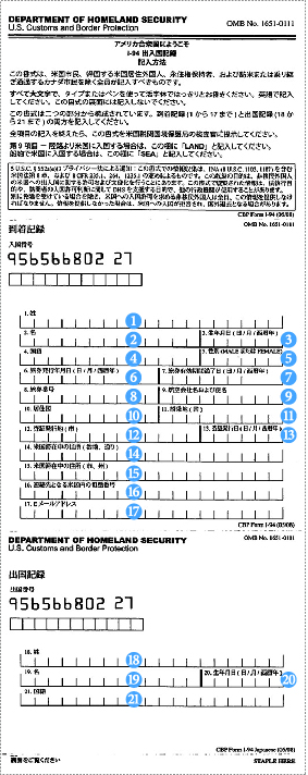 【入国記録カード】